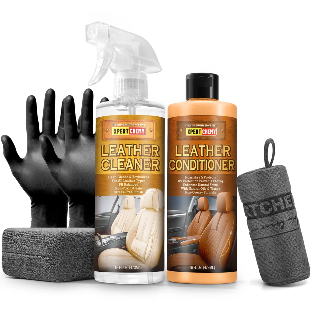 Give your leather a like-new look with XPERTCHEMY® Leather Cleaner. This powerful yet gentle formula deeply cleans, conditions, and protects all leather types—from car seats and sofas to handbags and jackets. It effortlessly lifts dirt and stains while restoring natural shine and softness. Enriched with UV blockers, it shields against fading and cracking. The pH-balanced, non-toxic solution is safe for all finished leather and leaves no residue. Simply spray, wipe, and enjoy professional results!